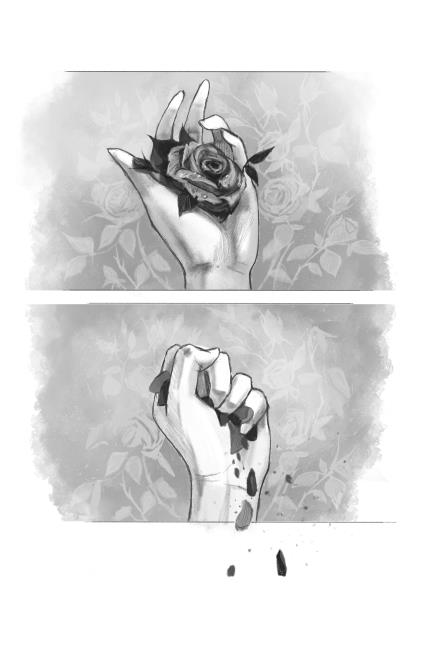 Перед занавесом лежит камень. Герда, очень утомленная, медленно выходит из-за портала. Опускается на камень.