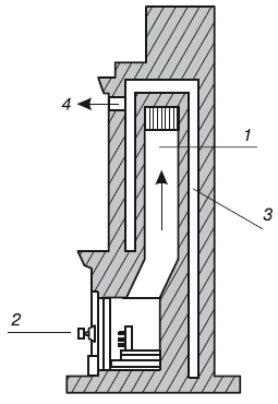 Рис. 1.2. Камин изнутри: 1 —дымовая труба; 2 – чугунная решетка; 3 – канал для циркуляции воздуха; 4 – канал для выхода нагретого воздуха