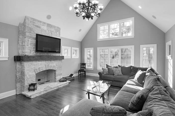 Готический стиль дома предполагает наличие просторных холлов и спален. Конечно, в «готическом» замке обязателен огромный камин с потемневшими от «старости» каминными аксессуарами, однако все остальные условности вроде шкуры убитого вами медведя на полу непринципиальны. Главное в интерьере такого дома – соблюсти соответствие расположения мебели пропорциям больших окон. Мебель может быть вполне современной, однако не китчевой – строгой, спокойной, даже вальяжной. Минимум нефункциональных вещей, декор преимущественно текстильный. Цветовая палитра – холодная, сдержанная. Очень важно (поскольку акцентом интерьера будут являться окна) заранее выбрать расположение дома на участке так, чтобы из окна открывался наилучший вид. В любом случае это дом не для коттеджного поселка экономкласса, где продаются крохотные участки