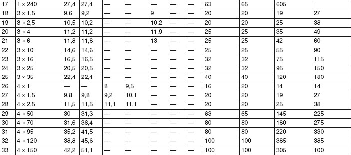 Таблица 1.10. Сечение токопроводящей жилы кабеля