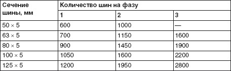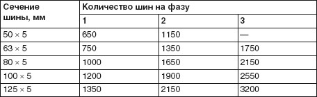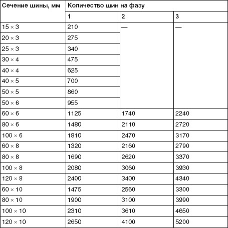 Таблица 1.7. Допустимый длительный ток для медных шин прямоугольного сечения (А) ПУЭ