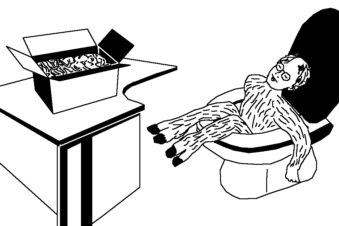 Но не так быстро ему суждено было уединиться! Из уборной выходил Дупл, за ним увивался зловонный запах его испражнений. Не верите? Ну, не одеколон же он такой использовал?