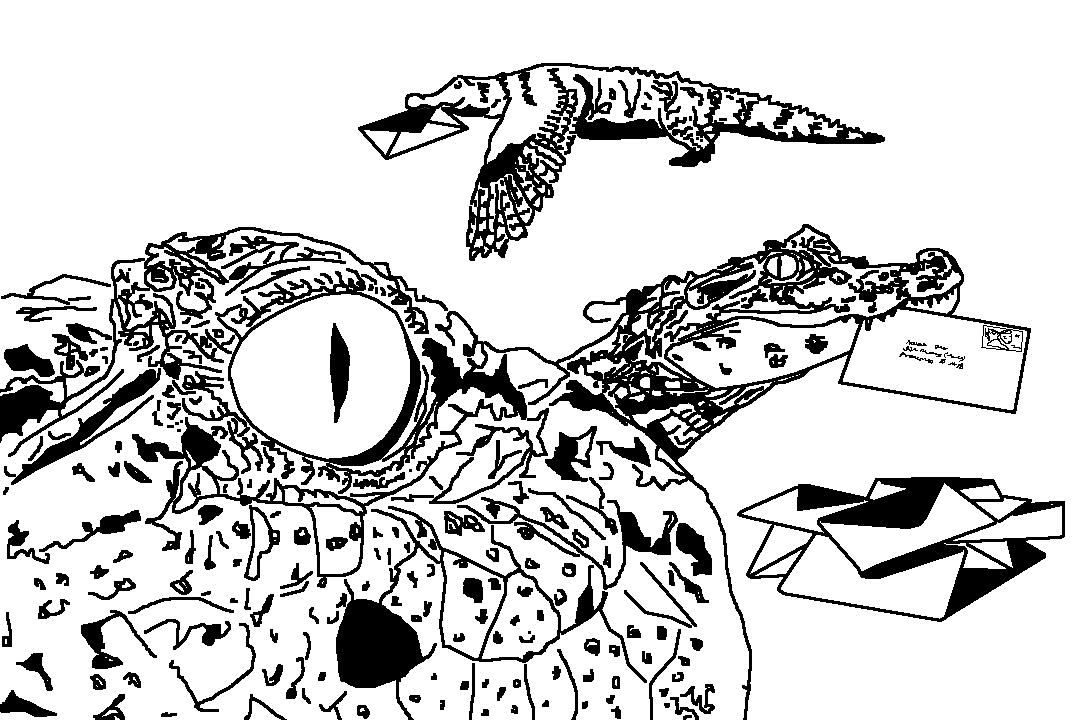 Когда они справились с этой нежданной работёнкой и с наслаждением собирались расслабиться, в окошке показалась морда крокодила, что мимо проходил. Тот заботливо держал в зубах письмо. Этот своеобразный почтальон просунул свою длинную пасть во фрамугу и разжал челюсть. Письмо осенним листиком плавно запорхало по комнате. Чета Дуремар с ужасом заворожённо следили за этим полётом. Приземлилось оно на полу ровно на такой же конверт, что, видимо, был доставлен час назад.