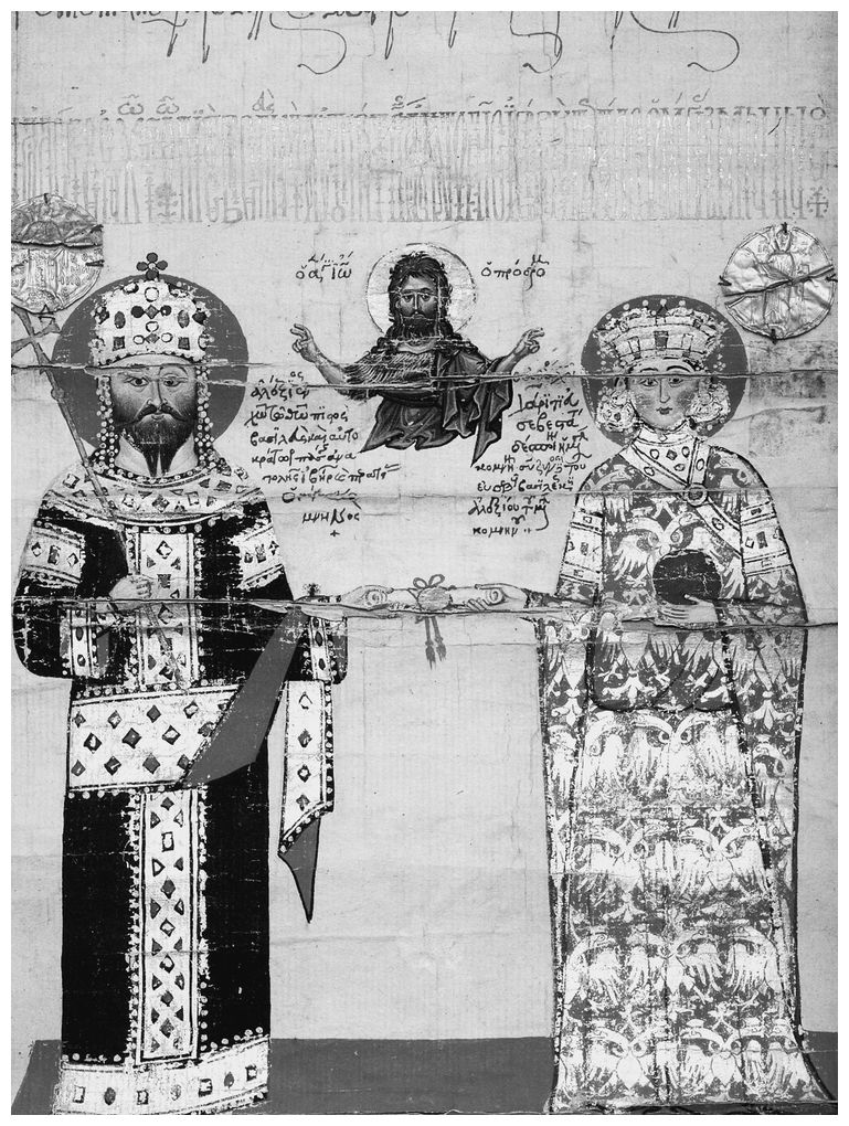 Трапезундский император Алексей III Великий Комнин с супругой Феодорой Кантакузиной. Средневековое изображение