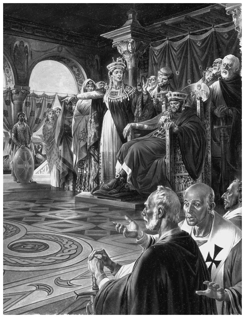 Император Юстиниан и Феодора перед придворными во время мятежа Ника. Художник А. Дюрансо
