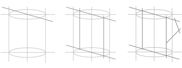 Конструкция рассматривается на самых простых предметах, которые встречаются нам каждый день. При этом в первых заданиях мы сознательно игнорируем явления наблюдательной перспективы в наших конструкциях, чтобы облегчить усвоение информации об особенностях геометрических построений. Потом, когда появляется какая-то ясность относительно геометрии предметов, мы начнем разбирать явления перспективы.