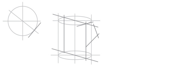 Эллипсы цилиндра, стоящего на горизонтальной плоскости, вырождаются в прямую на уровне горизонта (это соответствует уровню глаз) и все более разворачиваются, стремясь стать окружностью, по мере удаления от уровня горизонта. Поэтому эллипс горлышка будет развернут несколько меньше чем эллипс донышка.