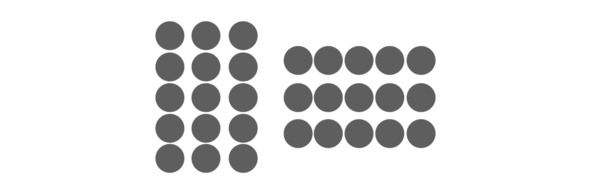 Благодаря тому, что расположенные рядом объекты группируются вместе, круги слева мы воспринимаем как вертикальные колонки, а круги справа мы видим как горизонтальные ряды.