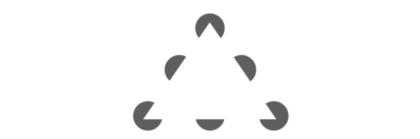 Взглянув на картинку, вы увидите круги и треугольник, которых там в действительности нет. Сгруппированные вместе объекты выглядят как целое. Мы мысленно заканчиваем проведение линий, игнорируя пробелы между элементами. Ни треугольника, ни кругов нет на картинке, но наш мозг домысливает недостающие части для создания знакомых ему форм.