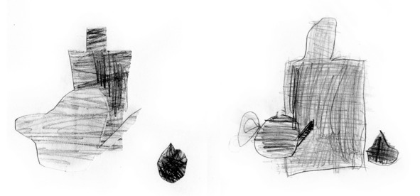 Второй этап задания – нарисовать натюрморт из трех простых предметов так, чтобы один предмет загораживал другой и заштриховать их. Во втором задании ничего не вырезаем, просто рисуем предметы и заштриховываем так, чтобы все предметы были заштрихованы разным штрихом.