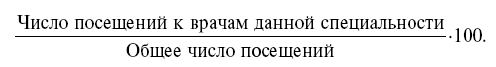 Структура посещений к врачам по специальностям рассчитывается следующим образом: