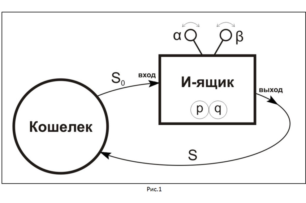 Схематично этот циклический И-процесс (инвестиционный или игровой процесс) можно представить так, что имеется Кошелек, который содержит некоторый Капитал игрока или инвестора. И ещё имеется некоторый И-ящик, то есть инвестиционный ящик или игровой ящик, понимайте, кому как хочется.