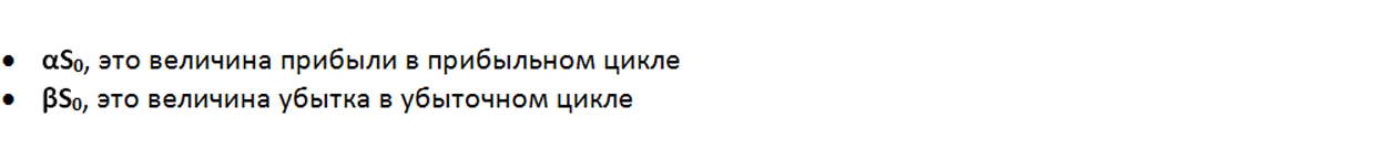 Ещё два параметра И-ящика, это доля прибыли α и доля убытка β. Эти параметры показывают, на сколько изменится S по отношению к S0: