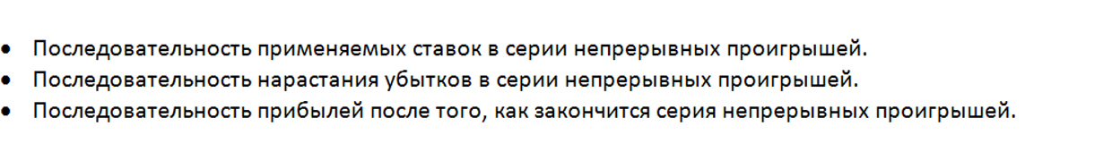Если во второй колонке таблицы указано, что сделка была убыточной, то в следующей строке показана такая ставка, которая там должна быть в соответствии с главной последовательностью Мартингейла.