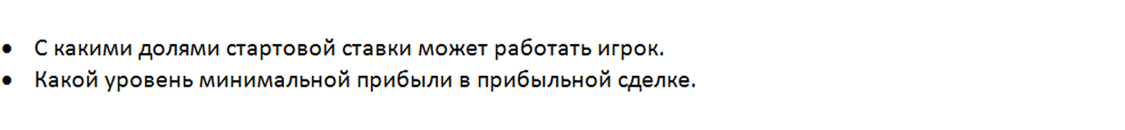В первой сделке участвует стартовая ставка, которая в прибыльном случае дает прибыль не менее некоторой заданной минимальной прибыли.