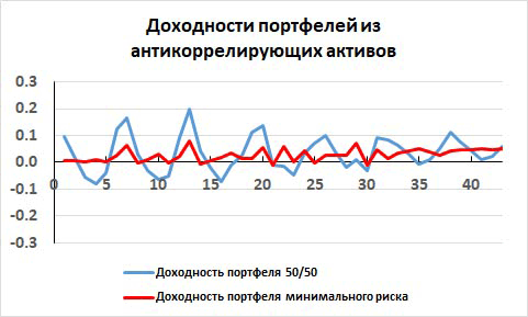 Рис. 11. Доходности портфеля с активами, у которых доходности сильно антикоррелируют.