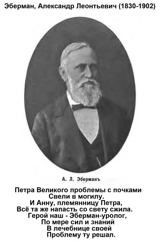 Лечебница доктора-уролога Эбермна находилась по выезду из Царского Села на Московское шоссе сразу за Московскими воротами с правой стороны. Место было удачное – рядом находилась летняя царская резиденция – Екатерининский дворец, плюс, летние дачи царских вельмож. В основу лечения были взяты не хирургические методы, щадящие – употребление минеральной воды и кумыса, а также, применение ванн с разными лечебными средствами. Кардинально проблему очищения мочевыводящих протоков от камней это не решало, но способствовало снятию приступов почечных коликов.