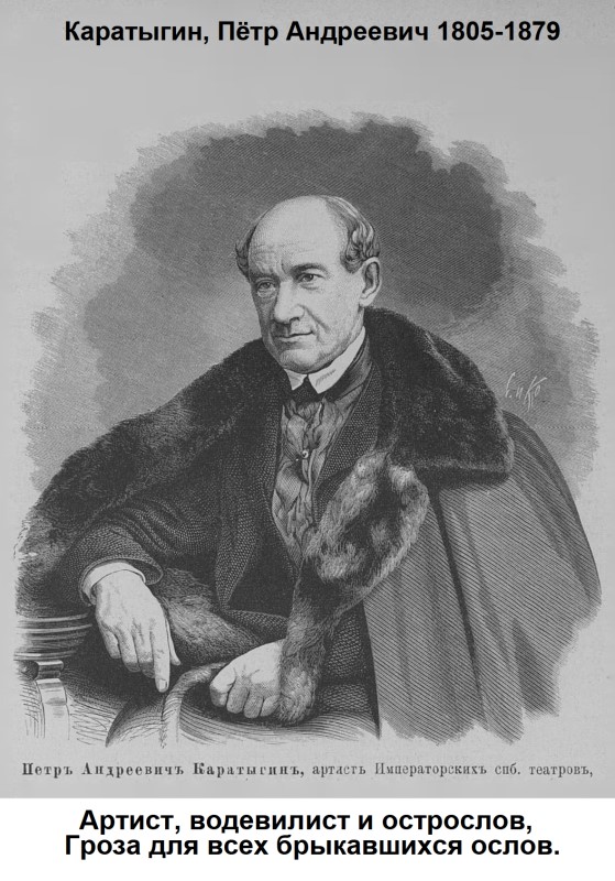 В 1880 году сыном П.А. Каратыгина, Петром Петровичем, были изданы и редактированы «Записки Петра Андреевича Каратыгина». Очень достоверно показан закулисный мир артистов. Этот мир был источником основных столичных сплетен. Да и поговорок. Вот одна из них – игра не стоит свеч. Сейчас так говорят о деле или занятии, которое не оправдывает затраченных усилий. А пошло это выражение из театра. Артисты, вместо поспектакльной платы (была такая форма премиальных в случае успеха актёра в спектакле), получали каждый вечер просто по две восковые свечки, которые обыкновенно они зажигали у собственного своего зеркальца в уборной театра. Но это поощрение касалось только тех, у кого был успех. Дирекция, выдавая свечки, иному говорила: – «А Вы сударь (сударыня) зря пришли. Ваша игра не стоила свеч».