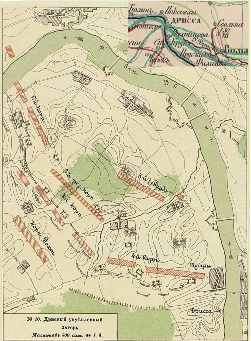 Оперативную задачу 1-го пехотного корпуса ген. Витгенштейна была чётко определена приказом командарма за №464 от 4(16) июля: «Ваше сият-ство с вверенным вам корпусом присоединив к оному запасные батальоны и эскадроны отрядов кн. Репнина и Гамена, остаетесь отделены для действий против того неприятельского корпуса, который быть может перейдет Двину у Динабурга и вообще для прикрытия всего края от Двины до Новгорода. Операционная ваша линия суть от Дриссы, через Себеж, Псков к Новгороду. Хотя и дается вам сие отступное движение, но оное должны вы делать в таком только случае, когда будет действительно иметь превосходящего в силах против себя неприятеля. В противном же случае предоставляется совершенная воля перейти на левую сторону Двины, действовать с решительностью наступательно и разбивши неприятеля, возвратиться обратно на правый берег Двины. 1-я армия в состоянии будет в случае надобности вас подкрепить, но далее в.с. будете действовать уже одни. Направление 1-й армии будет из Полоцка на Витебск или Невель".