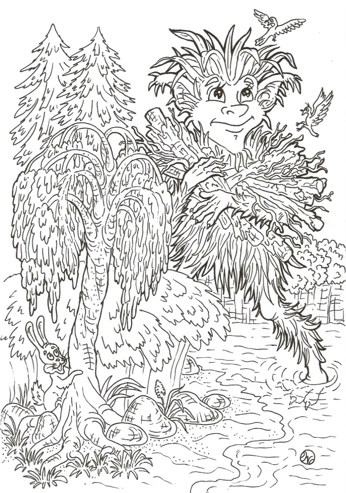 Отыскав заветную иву, он погладил её, как показывала Фая. В тот же миг с ветвей полились волшебные струйки. Зяка встал под них и вырос до размеров настоящей зелёной копны!