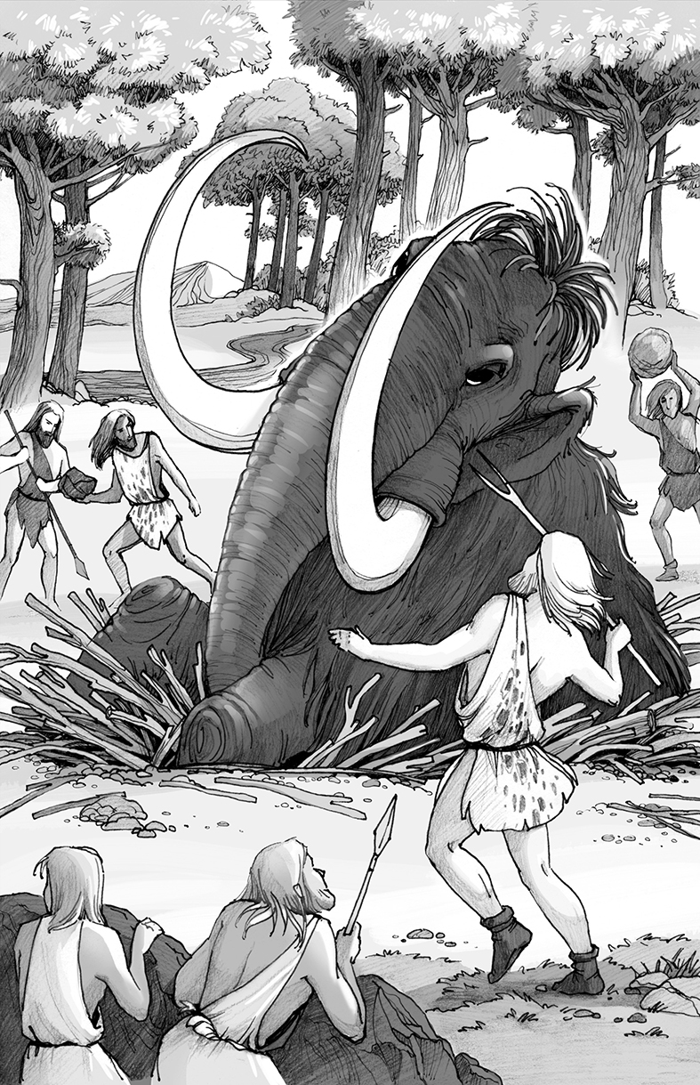 Мамонты появились неожиданно. Пять огромных и величественных гигантов медленно вышли на поляну. Впереди – вожак. Он чинно передвигал свои волосатые ноги. Купание в прохладной реке притупило его бдительность.