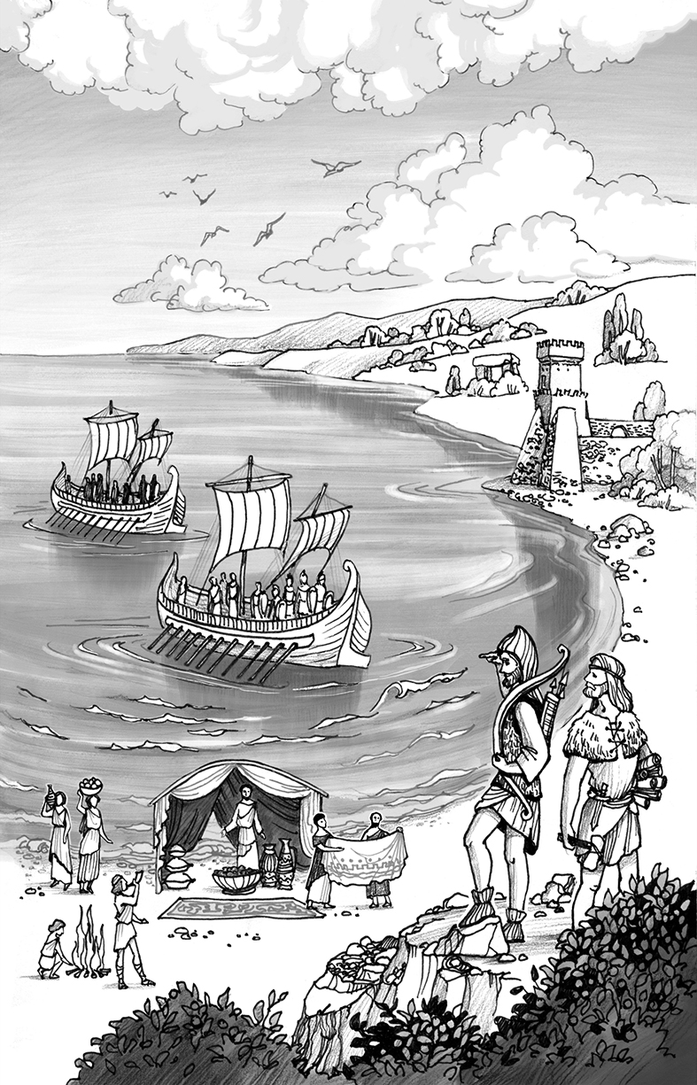 Смотрят однажды тавры – с моря идет кораблей видимо-невидимо. Забили тревогу. Позвали на помощь братьев – соседей. Женщин и детей спрятали. Изготовились мужчины. С оружием встали.