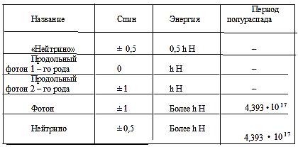 Классификация элементарных частиц с нулевой массой покоя (по А. Г. Шлёнову [5])