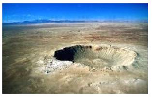 Рис. 3. Аризонский кратер возник около 50 тысяч лет назад после падения метеорита, который весил 300 тысяч тонн и летел со скоростью 60 тысяч км/ч.