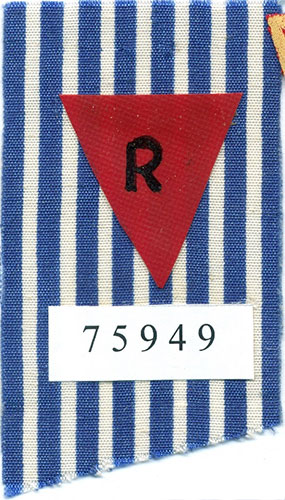 Далее привели в барак ноенцуганг (для новоприбывших), раздели, постригли наголо, загнали под холодный душ. В другой комнате выдали номера с красным треугольником – символом политзаключенных, полосатую одежду, деревянные колодки. Здесь мой номер был 17322. Отметили, у кого вставные металлические зубы. Все это происходило с избиениями и пытками.