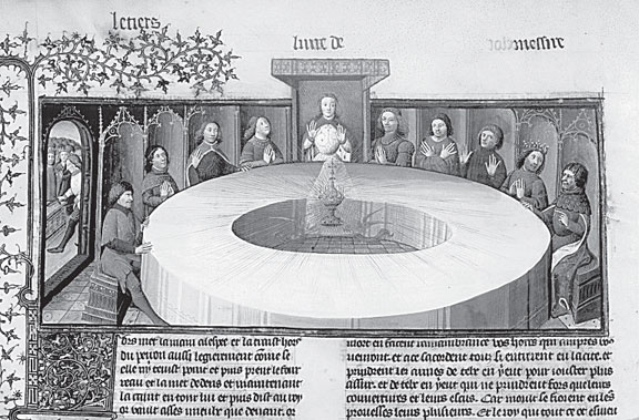 Явление Грааля Артуру и рыцарям Круглого стола на праздник Пятидесятницы. Миниатюра рукописи «Ланселот и св. Грааль». 1407