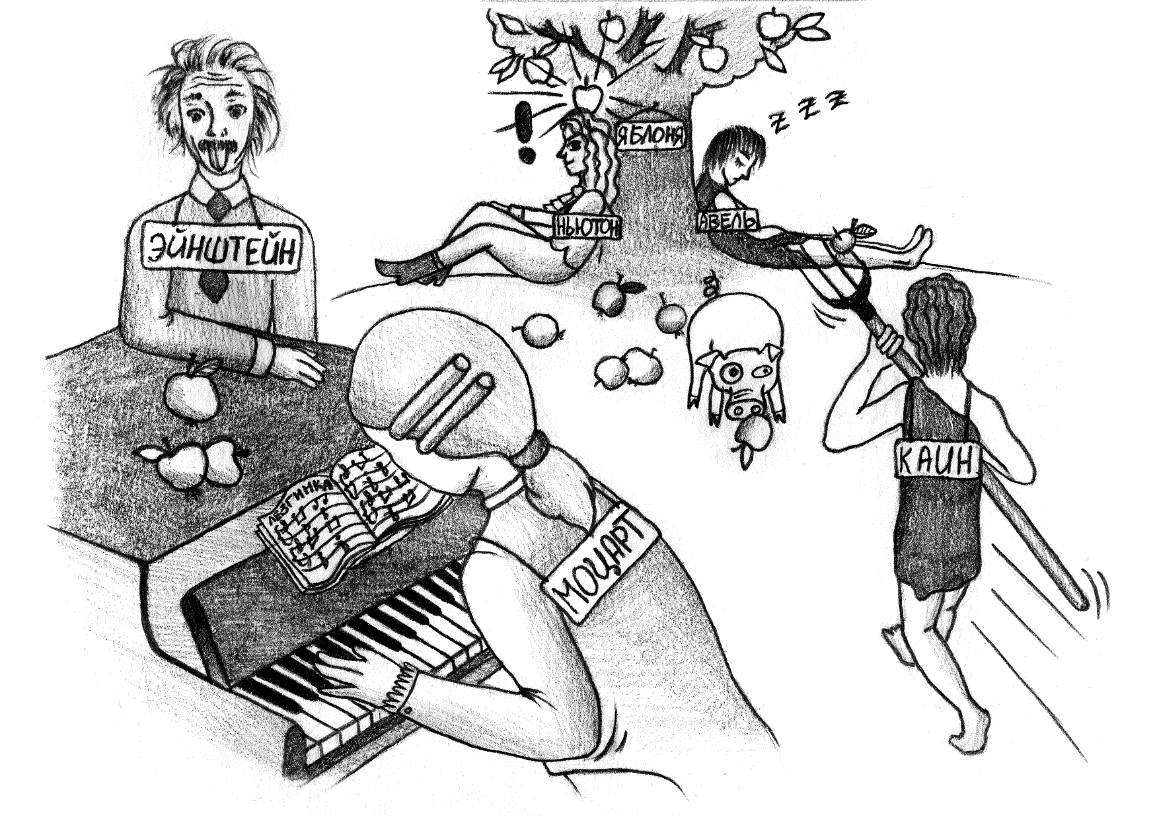 Первый великий «шизофреник» – это библейский Каин, который убил своего брата Авеля. «Почему?» – спросите вы. А потому что налицо эмоциональная холодность у товарища Каина, не мог он испытывать теплых родственных чувств эмоциональной близости к ближайшему родственнику (а ведь это один из самых важных признаков шизофрении), вот и убил вилами родного брата из-за своих эгоистических побуждений. А может, и «голосишки» внутри головы заговорили, но об этом история умалчивает.