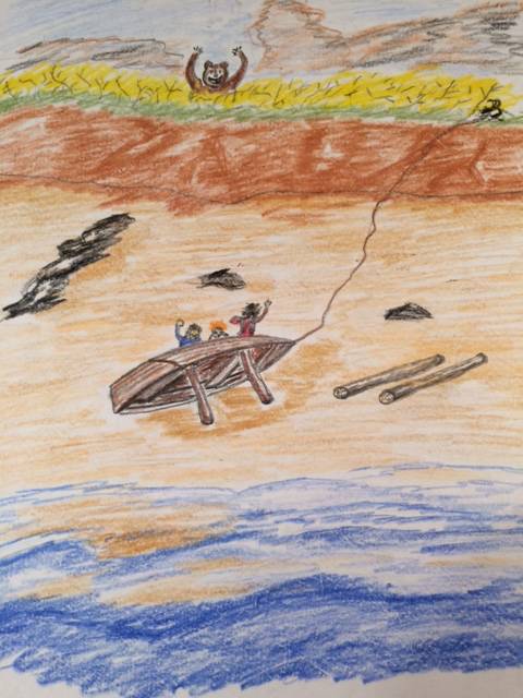 Ко времени, когда солнышко начало прогревать воздух, семейство уже успело скатить по бревнам кунгас на воду, подрулить к нему бревна-поплавки как придумал Колька. Несмотря на старания законопатить, заткнуть все щели в днище, судно протекало. Не ручьем, но так, что Сеньке пришлось изрядно помахать ковшиком, чтоб убрать воду и не дать ей скапливаться. Снова вытащили лодку на песок, подвязали к ней вдоль бортов бревна. Помогая кольями, вновь спустили лодку на воду. Подождали. Вода набралась, закрыла даже дно, но выше подниматься не стала: привязанные бревна не давали кунгасу тонуть.