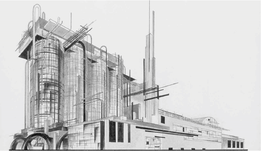 Яков Чернихов. Химзавод. Композиция на тему «завод серной кислоты» (1-й вариант). Из книги «Основы современной архитектуры», 1931 год[15]