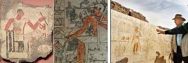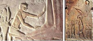 – На первом фото, омывание ног Богу… по версии учёных, египтяне изображали Богов великанами… Только странно, что на второй фреске, Боги молятся Богу, вместе с обычными людьми…