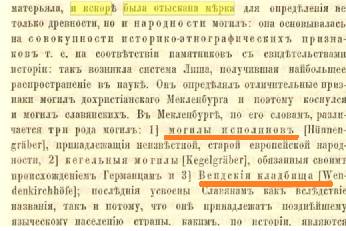– В истории Мекленбурга встретилась интересная заметка о трёх видах кладбищ, характерных для местности: вендския, они же славянские… кегельныя и могилы исполинов… и ведь не тайна это была, почему-то…