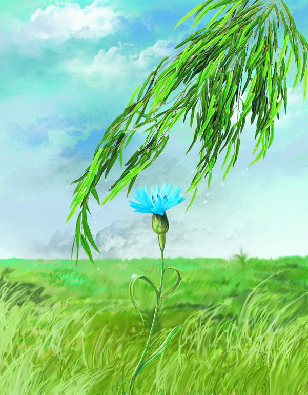 Иллюстрация к сказке о храбром Васе-Васильке и его прекрасной невесте: ива-Настя и Вася-василек.