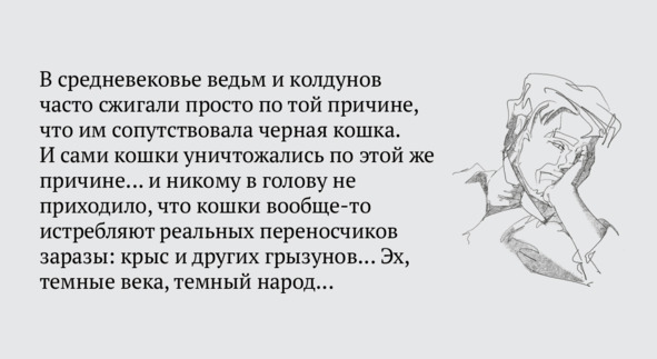 Главные персонажи книги – вирусы и демоны. У них много общего: чаще всего они невидимы, у них есть рожки, они крайне несимпатичны. К тому же они всегда представляли угрозу людям и другим живым существам. При всем этом вы можете заметить, что первые существуют, а вторые – выдумка. Вы, разумеется, будете по-своему правы. Но если бы вам при помощи машины удалось переместиться в XIV в. и на старославянском рассказать своим далеким предкам, что причина их страданий вовсе не моровая дева, а миниатюрная и зловредная чумная палочка, в лучшем случае вы бы добились того, что демона просто бы переименовали в Вирусъ. И продолжили бы рассказывать примерно то же самое, с поправкой на то, что бес мелок, невидим, зело злой и дружит с крысами (те еще слуги дьявола).