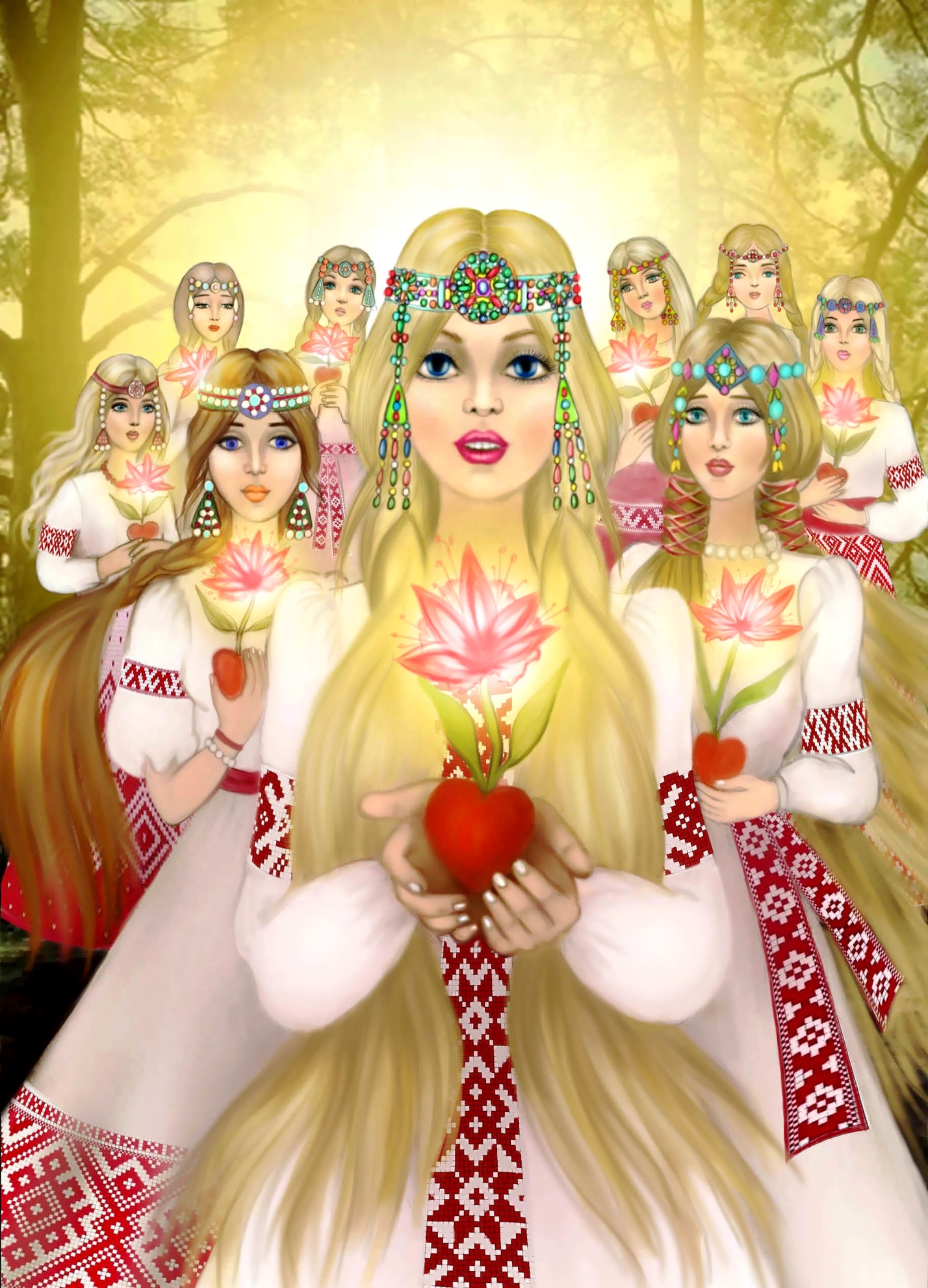 – Пойди, Машенька, за три дня до прихода богини Купалы в речку с девушками молодыми на выданье окунись. Сплети венок из календулы с васильками и астрами, расскажи ему послание для матушки-воды и дай по озеру наплаваться. А потом поклонись в пояс и надень венок на головушку. Станут капли в озеро падать. Услышишь решенье Купалы по вопросу семьи.