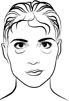 1 – признаки увядания зоны орбиты глаза. Здесь ставлю первый номер, так как по статистике это первое, что бросается в глаза;