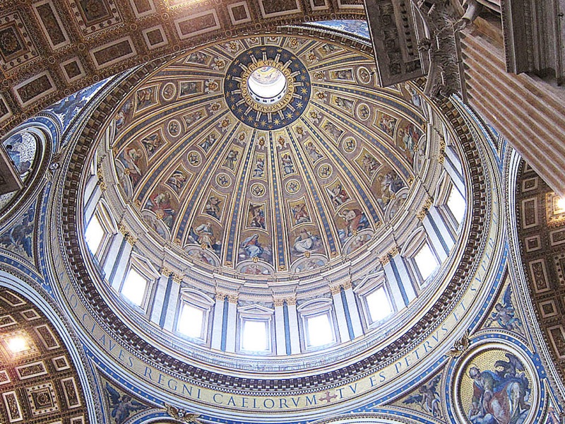 Первый камень Собора Святого Петра был заложен в 1506 году. Очень скоро станет понятно, что возведение Купола – куда более сложная задача, чем казалось в начале. Купол Санта-Мария-дель-Фьоре, творение Брунеллески, и свод Пантеона могут служить не более, чем источниками вдохновения. Слишком многое их отличает от особенностей храма в Ватикане, строительство которого обретало все большую важность. Собор Святого Петра должен был превратиться в воплощение могущества и власти Католической Церкви.