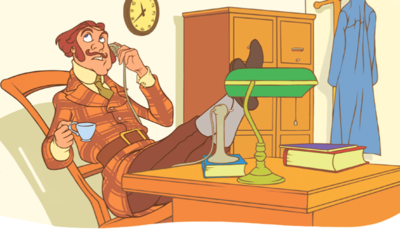 Сыщик Питкин допивал четвёртый стакан чая, размышляя над запутанным делом, а верный бульдог Тоби безмятежно спал у ног хозяина. Мирную картину нарушил резкий звонок. Тоби вскочил и зарычал на телефонный аппарат. Питкин погрозил любимцу пальцем и поднял трубку.