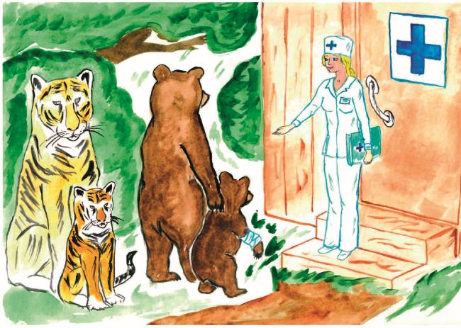 Как-то раз, когда папа-тигр вернулся с охоты (а охотился он далеко от логова, где жила тигрица с тигрятами), он рассказал, что в тайге появился Доктор, который лечит лесных животных.