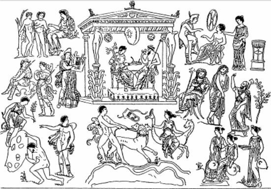Если говорить о жанрах греческой литературы этого периода, то следует упомянуть о гимнах7 в честь Гермеса, Афродиты, Деметры, Диониса, Аполлона. Характерно для этой эпохи и появление пародии8 на героические поэмы, такие как «Война мышей и лягушек» («Батрахомиомахия»).