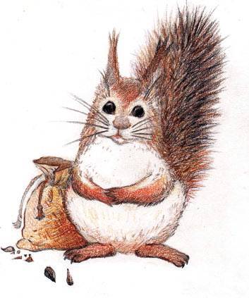И белка Феша. У белочки был ценный мешок, в котором за много лет скопились разные лесные богатства: шерсть, да сено, да мох.