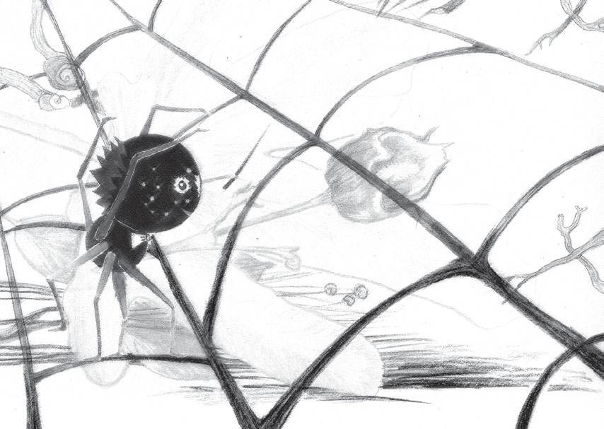 Напротив дуба высокого росла молодая сосна, и жили на ней друзья Ерохины. Паук-многоног и многорук, которого все в лесу звали «Композитор», потому как умел он превращать звуки в линии.