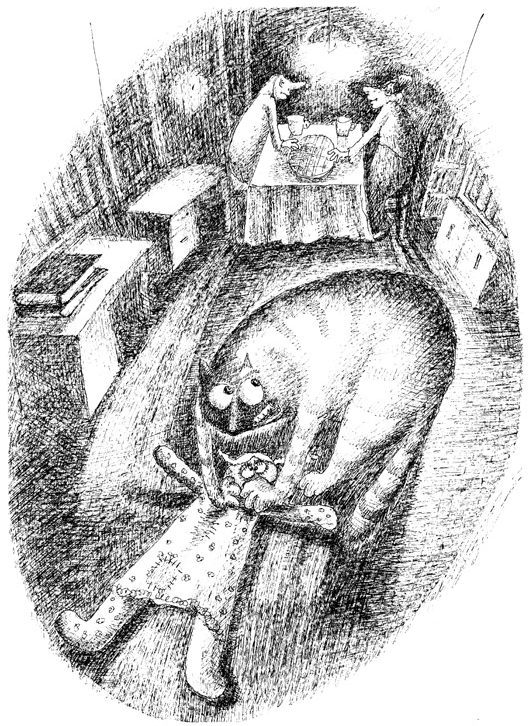 В это время из читального зала выпорхнула довольная Кира, нежно прижимая к груди Кинга и Фрейда.