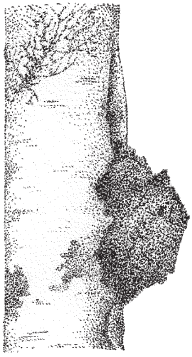 Участки, прилегающие к стволу, содержат не только гифы гриба, но и клетки древесины.