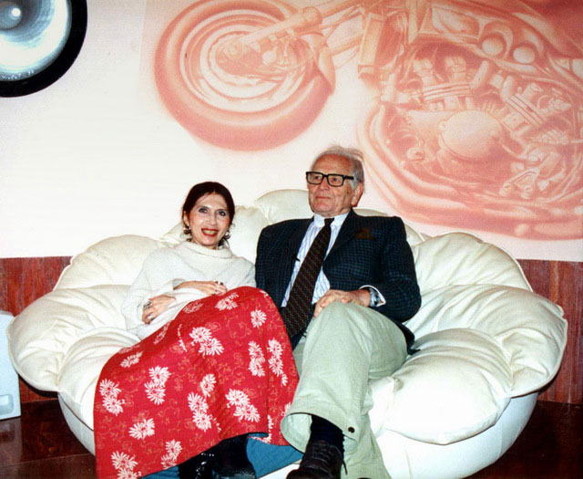 Пьер Карден принял ситуацию с королевской вежливостью. Подкатили к железным воротам замка в горах, до тех пор недоступного съемочным нашествиям. Два часа ночи. На пустынной темной тропинке стоит один элегантный и страстный Пьер Карден! Без охраны! Утонченный король будто законсервирован, бег времени минует его. Открываются врата в святая святых, и все обалдевают от вида круглых чудищ с глазами-иллюминаторами. Карден купил их за 5 миллионов долларов и 10 лет активно достраивал по собственным эскизам, не нарушая былой гармонии. Встреча потрясла своей стремительностью. Карден и Вознесенский целуются, багаж брошен на дороге – "никто не тронет", заверил Карден. В следующее мгновение лабиринты дома ошеломляют своей необычностью. Первое существо, которое встретилось уже за оградой – миниатюрная собачка породы шелти. Она по-хозяйски ждала на фоне сооружения из далекого будущего – чудища без прямых линий с выпученными глазами-иллюминаторами, продырявленного разнокалиберными отверстиями в стенах, влекущих загадочной бездной.