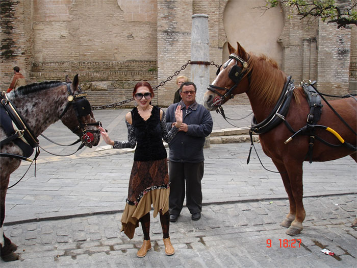 Вскоре она воспользовалась советом кутюрье во время визита к всемирно известному итальянскому скульптору Гарри Розенталю в Милане, когда тоже вручила ему свой Каталог и неожиданно этот дружелюбный жест вызвал у Гарри, помимо восторга, волну воспоминаний. Его глаза засияли, когда он вспомнил маму, талантливейшего модельера – он показал эскизы элегантных моделей, развешенные по стенам узкого длинного коридора в особняке. А когда время встречи подошло к концу, и хотя, был теплый день, Гарри уникальный даже в небрежности жеста, накинул шаль из белого меха, легко касающуюся асфальта на приусадебном участке. А она подумала о том, что аристократическая манера носить необыденные вещи тоже у него в генах… Кстати, мех искусственный, возможно, от искренней любви к животным. Ведь всю экскурсию по владениям нас сопровождал внушительных размеров пёс, а на территории есть прекрасно оборудованная конюшня, ибо семья всегда увлекалась дрессажем. Дочка активно участвует в международных соревнованиях. В Португалии тоже рядом с хорошим домом расположена конюшня. В общей сложности порядка 100 лошадей.