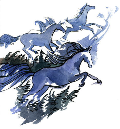 Поднялась яркая луна, разлив серебряный свет над темнеющим лесом. Марик осторожно сделал крохотный шаг вперёд. Кай предостерегающе фыркнул и тоже придвинулся к заветной черте. Небывалое упоение собственными силами горячей волной хлынуло к сердцу. Марик поднял голову, раздул ноздри и победно заржал. Жеребята восторженно переглянулись и в два прыжка скрылись в лесу.